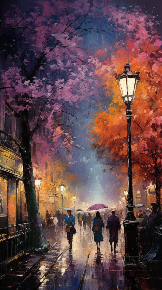 Rainy evening stroll Diamond Painting Kit