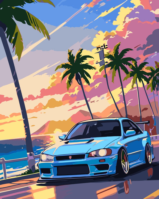 Vintage Red Chrysler by the Sea Paint by Numbers kit