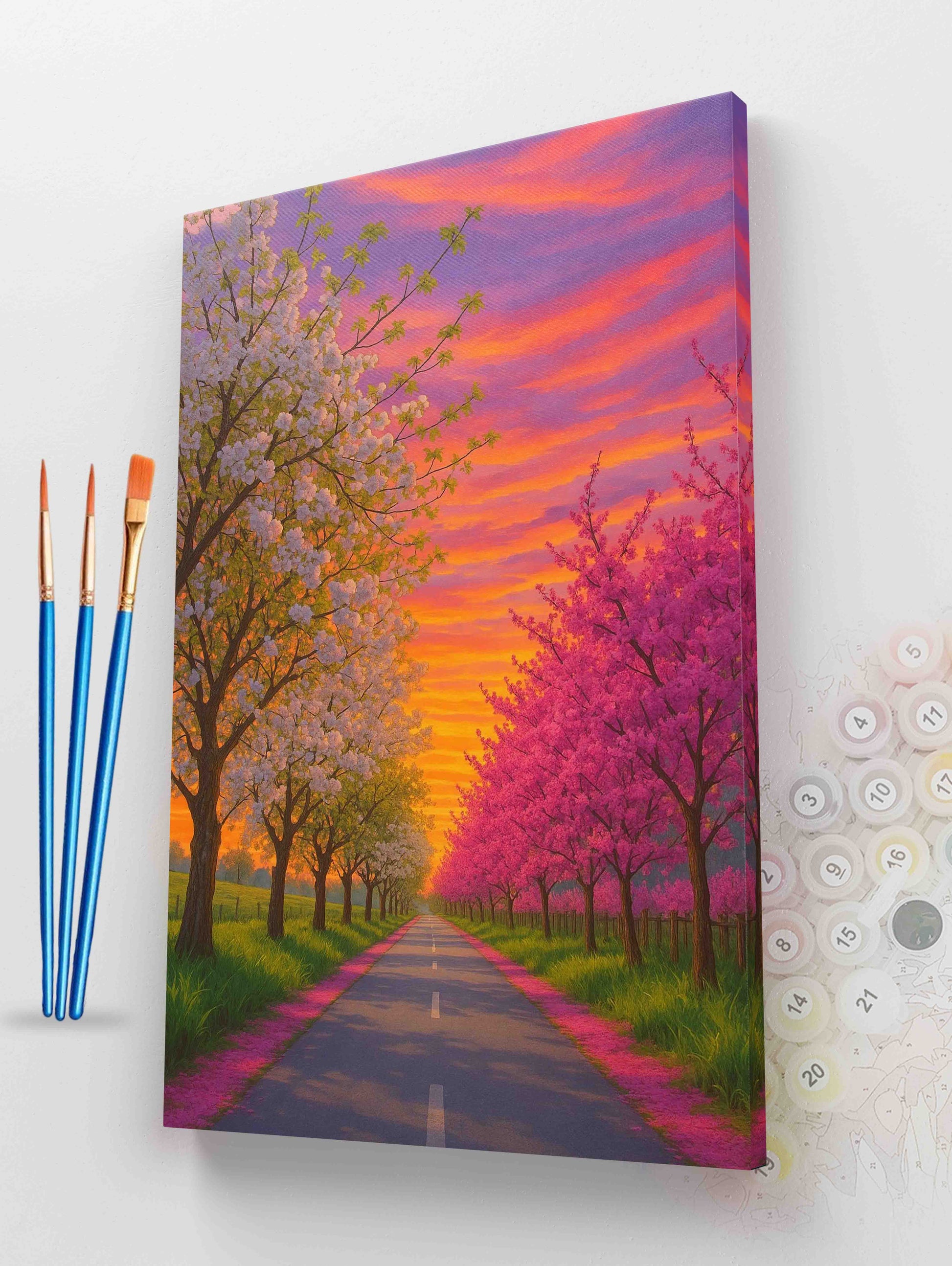 Cherry Blossom Sunset Road Paint by Numbers Kit